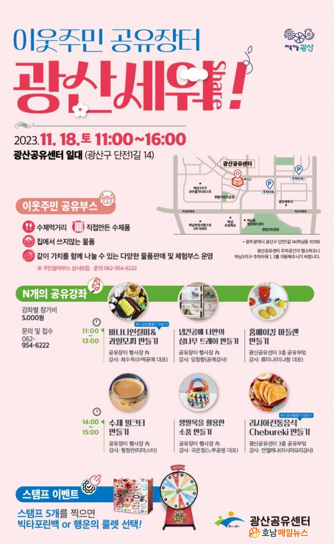 ¡®N°³ÀÇ °øÀ¯°Á¡¯¿¡¼´Â À½½Ä ¸¸µé±â, »õȰ¿ë(¾÷»çÀÌŬ¸µ) °ø¿¹ µî ÁÖ¹ÎÀÌ Ã¼ÇèÇÏ°í ¹è¿ï ¼ö ÀÖ´Â 6°³ °Á¸¦ ÁøÇàÇÑ´Ù. ¡®½ºÅÆÇÁ À̺¥Æ®¡¯´Â °¢ °øÀ¯°ü, °Á¿¡ Âü¿© ÀÎÁõ µµÀåÀ» ¹ÞÀ¸¸é ¼±¹° »Ì±â Âü¿© ±âȸ¸¦ Á¦°øÇÑ´Ù.