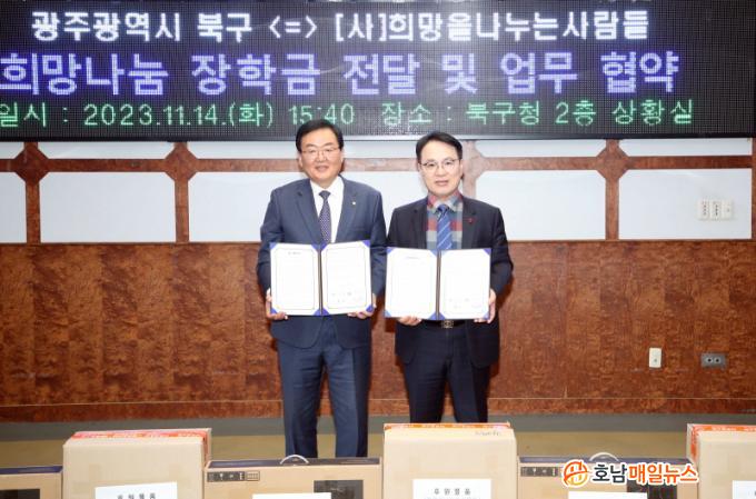 15ÀÏ ºÏ±¸¿¡ µû¸£¸é Áö³ 14ÀÏ ºÏ±¸Ã» »óȲ½Ç¿¡¼ ¹®ÀÎ ºÏ±¸Ã»Àå, ±èµ¿¿ì Èñ¸ÁÀ»³ª´©´Â»ç¶÷µé ºÎȸÀå µî °ü°èÀÚµéÀÌ Âü¿©ÇÑ °¡¿îµ¥ ¡®Èñ¸Á ³ª´® ÀåÇÐ±Ý ÈÄ¿øÀ» À§ÇÑ ¾÷¹«Çù¾à¡¯ÀÌ Ã¼°áµÇ¾ú´Ù.