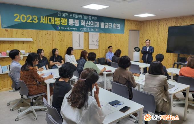 ¡®µ¿Çà ¾à¼Ó 12°è¸í¡¯Àº Á¶Á÷¹®È °³¼±À» À§ÇÑ Àü Á÷¿ø Âü¿© ÇÁ·ÎÁ§Æ®¸¦ ÅëÇØ ¸¶·ÃµÈ ±¸¼º¿ø °£ Çൿ ÁöħÀÌ´Ù. Áö³ 6¿ù Á¶Á÷¹®È Áø´Ü ¼³¹®Á¶»ç¸¦ ½ÃÀÛÀ¸·Î 650¿© ¸íÀÇ Á÷¿øÀÌ Âü¿©ÇÑ ¿øÅ¹Åä·Ð°ú ´Ù¾çÇÑ Á÷±Þ°ú ¼¼´ë·Î ±¸¼ºµÈ 40ÀÎÀÇ Çõ½Å¸ðÀÓ ¡®¼¼´ëµ¿Çà ÅëÅë Çõ½ÅÀÇÁ¦ ¹ß±¼´Ü¡¯ÀÇ °ËÅ並 °ÅÃÄ ¡®Á¶Á÷¹®È °³¼± ÃßÁø´Ü¡¯¿¡¼ ÃÖÁ¾ È®Á¤µÆ´Ù.
