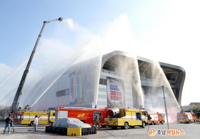 ±è¹®¿ë ±¤ÁÖ¼Ò¹æ¾ÈÀüº»ºÎÀåÀº ¡°À̹ø ÈÆ·ÃÀ» ÅëÇØ ¼Ò¹æ¾ÈÀüº»ºÎ¸¦ Áß½ÉÀ¸·Î À¯±âÀûÀÎ ÁöÈÖü°è¸¦ È®¸³ÇØ Àç³À¸·ÎºÎÅÍ ½Ã¹ÎÀÇ »ý¸í°ú ¾ÈÀüÀ» È®º¸ÇØ ³ª°¡°Ú´Ù¡±¸ç ¡°´ë±Ô¸ð À糹߻ý¶§ ¹Î¡¤°ü¡¤±º¡¤°æ µî °ü°è±â°üÀÌ ±ä¹ÐÇÑ °øÁ¶Ã¼°è¸¦ °®Ãç ³ª°¥ ¼ö ÀÖµµ·Ï ÃÖ¼±À» ´ÙÇϰڴ١±°í ¸»Çß´Ù.