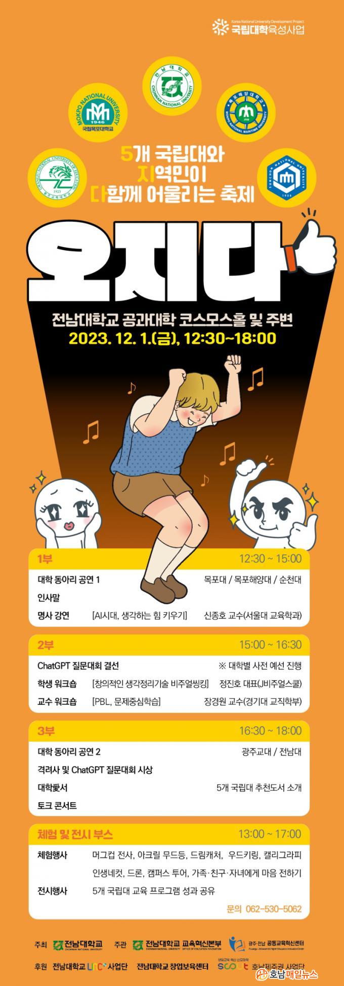 ¡®¿ÀÁö´Ù¡¯´Â Çã¼úÇÑ µ¥°¡ ¾øÀÌ ¸Å¿ì ¾ß¹«Áö°í ½Ç¼ÓÀÖ´Ù´Â ¶æÀÇ Ç¥Áؾî·Î, ±¤ÁÖÀü³² ±¹¸³´ëÇÐ °£ÀÇ Çù·Â°ú ±³·ù¸¦ °ÈÇÏ´Â ÇÑÆí, ´ëÇÐ ±¸¼º¿ø°ú Áö¿ª¹ÎÀÌ ÇÔ²² ¾î¿ï¸®´Â ³»½ÇÀÖ´Â ÃàÁ¦¶ó´Â Àǹ̸¦ ´ã¾Ò´Ù.