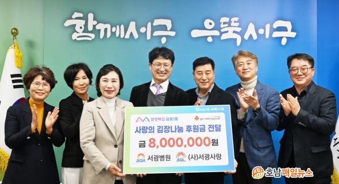 [È£³²¸ÅÀÏ´º½º = ±è±Ý´ö ±âÀÚ] ±èÀ̰ ¼±¸Ã»ÀåÀº 16ÀÏ ¿ÀÈÄ ¼±¤º´¿ø¡¤(»ç)¼±¤»ç¶û(´ëÇ¥ ¼ÇØÇö)À¸·ÎºÎÅÍ °Ü¿ïÀ» ¾Õ µÎ°í ¾î·Á¿î ÀÌ¿ôÀ» À§ÇÑ ¡®±ÝÈ£1µ¿ »ç¶ûÀÇ ±èÀå±èÄ¡ ³ª´®»ç¾÷¡¯ÀÇ ÈÄ¿ø±Ý 800¸¸¿øÀ» Àü´Þ¹Þ°í °¨»çÀÇ ¸¶À½À» ÀüÇß´Ù.