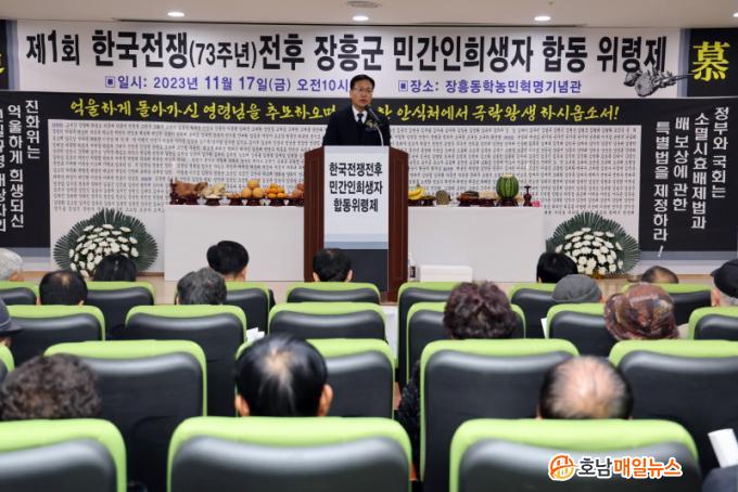 Á¶°è·æ Çѱ¹ÀüÀïÀüÈÄ ¹Î°£ÀÎÈñ»ýÀÚ ÀåÈïÀ¯Á·È¸ ȸÀåÀº ¡°Çѱ¹ÀüÀïÀÌ ¹ß¹ßÇÑÁö 70¿©³âÀÇ ¼¼¿ùÀÌ Áö³ª ÀÌÁ¦¾ß ¹Î°£ÀÎÈñ»ýÀںеéÀÇ ¸¶À½À» À§·ÎÇÒ ¼ö ÀÖ°Ô µÇ¾ú´Ù. ¾ï¿ïÇÑ Á×À½À» ÀØÁö ¾Ê°í ±â¾ïÇÏ¿© Èñ»ýÀÚµéÀÇ ¸í¿¹°¡ ȸº¹µÇ°í À¯°¡Á·ÀÇ ¾ÆÇÄÀ» ¾î·ç¸¸Áú ¼ö ÀÖµµ·Ï ¾ÕÀ¸·Îµµ ²ÙÁØÈ÷ À§·ÉÁ¦°¡ °³ÃֵǾúÀ¸¸é ÇÑ´Ù¡±°í ¸»Çß´Ù.