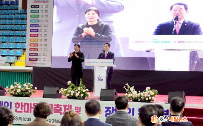 À̳¯ Çà»ç´Â ±è¿µ·Ï Àü³²µµÁö»ç¿Í Àü³²µµÀÇȸ ÃÖ¼±±¹ º¸°Çº¹Áöȯ°æÀ§¿øÀå, ½Å¹ÎÈ£ ±âȹÇàÁ¤À§¿øÀå µî 2õ¿© ¸íÀÌ Âü¼®ÇÑ °¡¿îµ¥ ±â³äÇà»ç¿Í Àå¾ÖÀÎ µ¿°ÅºÎºÎ ÇÕµ¿°áÈ¥½Ä, Àå¾ÖÀÎ ¾î¿ï¸² ÇѸ¶´ç ÃàÁ¦·Î ÆîÃÄÁ³´Ù.