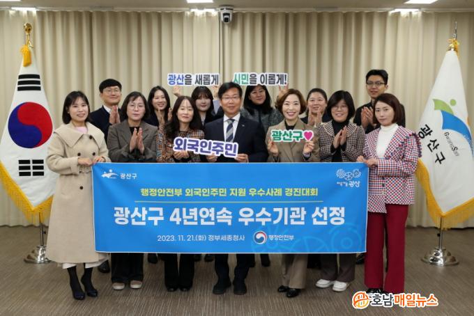 ¡®¿ì¸®´Â ¸ðµÎ ±¤»ê½Ã¹Î¡¯À̶ó´Â ÁÖÁ¦·Î Âü°¡ÇÑ ±¤»ê±¸´Â ¿ÃÇØ È£³²±Ç ÃÖÃÊ·Î ¿Ü±¹ÀÎ Àü´ã ºÎ¼ÀÎ ¡®¿Ü±¹ÀÎÁֹΰú¡¯¸¦ ½Å¼³Çϰí, Áö¿ª 21°³ µ¿¿¡ ´õÇØ ¿Ü±¹ÀÎÁÖ¹ÎÀ¸·Î ±¸¼ºµÈ °¡»óÀÇ µ¿ÀÎ ¡®22¹øÂ° ¸í¿¹µ¿¡¯À» ¸¸µé¾î ¿Ü±¹ÀÎÁֹΰúÀÇ ´ëȸ¦ ÃßÁøÇÏ´Â µî ¿Ü±¹ÀÎ ÁÖ¹ÎÀ» ÁøÁ¤ÇÑ ½Ã¹ÎÀ¸·Î ¼¼¿ì°í, ±Ç¸®¸¦ º¸ÀåÇÑ Á¤Ã¥À¸·Î Å« ÁÖ¸ñÀ» ¹Þ¾Ò´Ù.