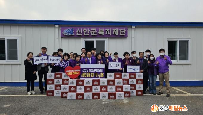 ƯÈ÷, ½Å¾È¿¡¼ »ý»êÇÑ ³ó»ê¹°ÀΠõÀÏ¿°°ú »õ¿ìÁ£, ´ëÆÄ, °íÃß µî ±èÀå Àç·á¸¦ »ç¿ëÇØ ¸ÀÀÖ´Â ±èÄ¡¸¦ ¼±º¸¿´À¸¸ç, ±èÀ籤 ½Å¾È ºÎ±º¼ö¿Í ½Å¾È±º ¿©¼º´ÜüÇùÀÇȸ ÀÓ¿ø 30¸íÀÌ Á÷Á¢ ¸¸µç ±èÄ¡ 1õkgÀ» ½Å¾È±ºº¹ÁöÀç´ÜÀ» ÅëÇØ °ü³» º¹Áö½Ã¼³¿¡ Àü´ÞÇß´Ù.
