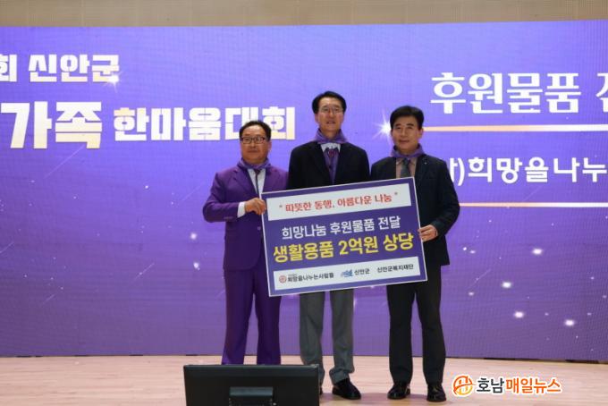 À̳¯ Àü´Þ¹ÞÀº »ç¶ûÀÇ ¹°Ç°Àº ÃÑ 2¾ï ¿ø »ó´çÀÇ ¼¼Á¦, ¼¤Çª, ±×¸© µîÀ¸·Î ½Å¾È±ºº¹ÁöÀç´Ü(ÀÌ»çÀå ÀÌÃæ¸¸)À» ÅëÇØ Ãë¾à°èÃþ°ú º¹Áö½Ã¼³¿¡ Àü´ÞÇÒ ¿¹Á¤ÀÌ´Ù.