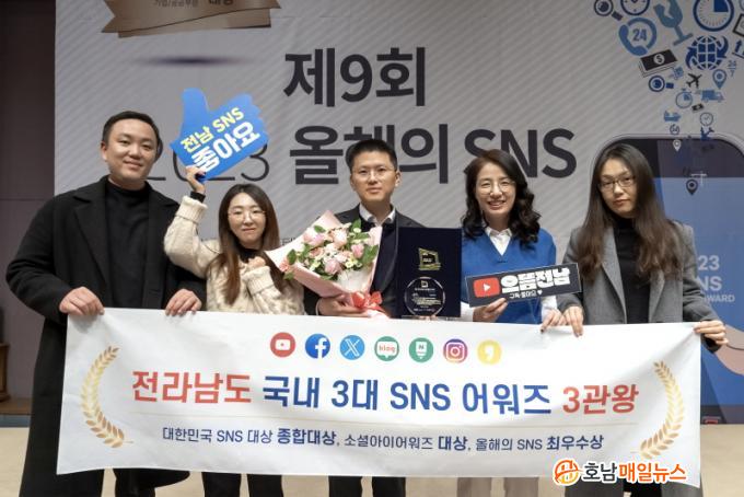 ¡®2023 ¿ÃÇØÀÇ SNS¡¯´Â °ø°ø±â°ü, ±â¾÷, ¼Ò»ó°øÀÎ µî ´©¸®¼ÒÅë¸Á ÇöȲÀ» Æò°¡ÇØ ±¹¹Î°ú Àû±ØÀûÀÎ Ä¿¹Â´ÏÄÉÀ̼ÇÀ» ÆîÄ£ ¿ì¼ö ±â°üÀ» ¼±Á¤ÇØ ½Ã»óÇÏ´Â Çà»ç´Ù. À̷νá Àü³²µµ´Â ¡ã¡®´ëÇѹα¹ SNS ´ë»ó¡¯¿¡¼ Á¾ÇÕ´ë»ó(°úÇбâ¼úÁ¤º¸Åë½ÅºÎ Àå°ü»ó) ¡ã¡®¼Ò¼È¾ÆÀ̾î¿öÁ¿¡¼ ´ë»óÀ» Æ÷ÇÔÇØ ¿ÃÇØ¸¸ ±¹³» 3´ë SNS ½Ã»ó½Ä¿¡¼ 3°ü¿Õ ¼ö»óÀ̶ó´Â ¿ª´ë±Þ ¼º°ú¸¦ °Åµ×´Ù.