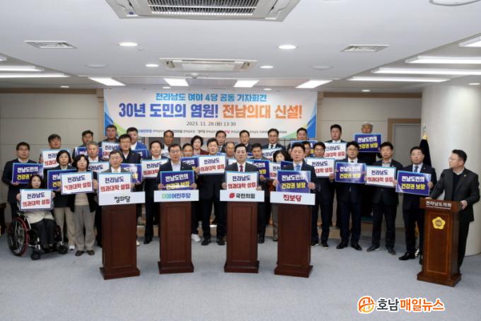 À̾î Àü³² ¿©¾ß 4´ç À§¿øÀåÀº ¡°¿À·£ ±â°£ ÀÇ·á±âº»±ÇÀÇ Â÷º°À» °Þ°í ÀÖ´Â Àü¶ó³²µµÀÇ ±¹¸³ Àǰú´ëÇÐ ½Å¼³¿¡ ¿©¾ß°¡ µû·Î ÀÏ ¼ö ¾ø¾î Àü³² ¿©¾ß 4´çÀÌ ¿À´Ã ÀÌ ÀÚ¸®¿¡ ÇÔ²² ¸ð¿´´Ù¡±°í ±âÀÚȸ°ßÀÇ ÃëÁö¸¦ ÀüÇϸç, ¡°Á¤ºÎ´Â ÀÇ´ë Áõ¿ø°èȹ¿¡ Áö¿ªÀÇ´ë ½Å¼³ ¹æÄ§À» Æ÷ÇÔÇϰí 2025³âµµ ÀÇ´ë Áõ¿øºÐ¿¡ ½Å¼³Á¤¿øÀ» ¹èÁ¤ÇÒ °Í¡±À» Á¤ºÎ¿¡ °£°îÈ÷ °ÇÀÇÇß´Ù.