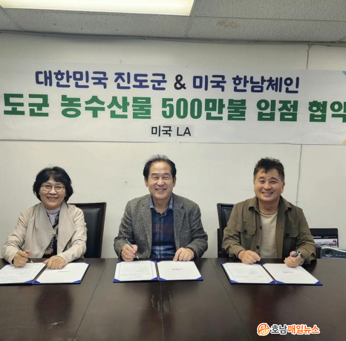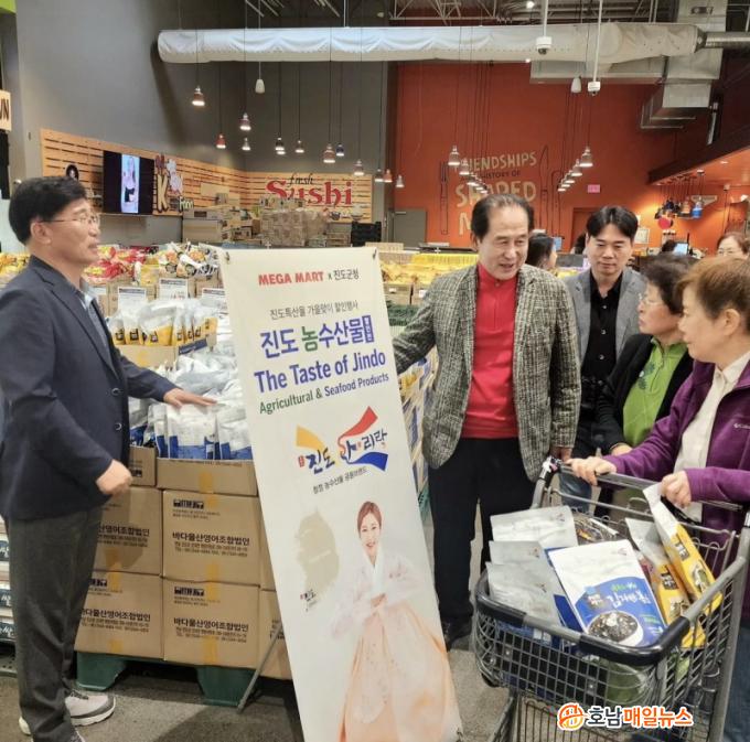 Áøµµ±ºÀº ÇöÁö ´ë±Ô¸ð ÇÑÀνÃÀåÀÎ ·Î½º¾ØÁ©·¹½º ¼ÒÀç Çѳ²Ã¼ÀÎ(´ëÇ¥ Çϱâȯ)°ú 500¸¸ ´Þ·¯ ¼öÃâ Çù¾à¿¡ ÀÌ¾î »÷ÇÁ¶õ½Ã½ºÄÚ ¼ÒÀç ¸Þ°¡¸¶Æ® µî ¹Ì±¹ ÇöÁö 4°³¼Ò¿¡¼ Áøµµ±º ³ó¼ö»ê¹° ÆÇÃË Æ¯º°ÀüÀ» ÁøÇàÇß´Ù.