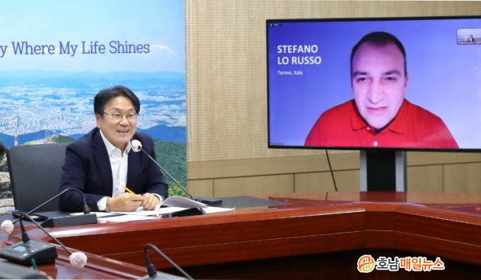 °±âÁ¤ ±¤ÁÖ±¤¿ª½ÃÀåÀº 30ÀÏ ¿ÀÈÄ ½Ãû¿¡¼ ÀÌÅ»¸®¾Æ Å丮³ë½Ã ½ºÅ×ÆÄ³ë ·Î ·ç½î ½ÃÀå°ú È»óȸÀǸ¦ ÁøÇà, µÎ µµ½Ã °£ Çù·Â¹æ¾ÈÀ» ³íÀÇÇß´Ù.
