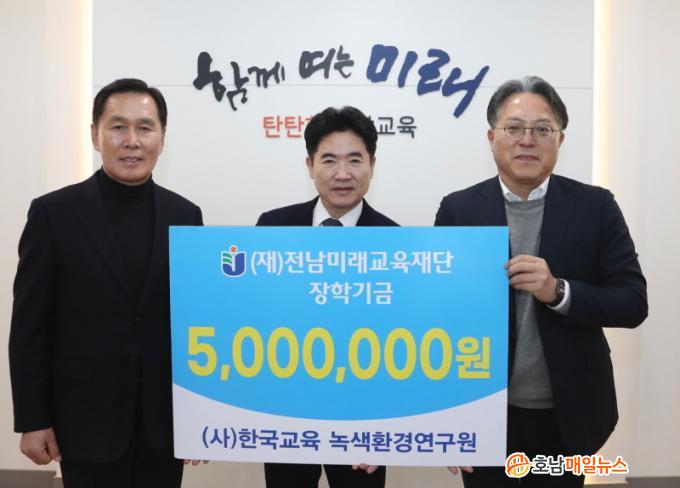 À̱æÈÆ Àü³²¹Ì·¡±³À°Àç´Ü ¿øÀåÀº ¡°Àü³²±³À°¿¡ °ü½ÉÀ» °®°í ÀåÇбÝÀ» ±âºÎÇØÁֽŠÇѱ¹±³À°³ì»öȯ°æ¿¬±¸¿ø¿¡ Áø½ÉÀ¸·Î °¨»çµå¸°´Ù.¡±¸é¼ ¡°±âºÎÀÚÀÇ ¶æ¿¡ µû¶ó Àü³² ¹Ì·¡ÀÎÀç À°¼º°ú ÇлýµéÀÇ ²ÞÀ» Ű¿ì´Â µ¥¿¡ ¼ÒÁßÈ÷ »ç¿ëÇϰڴÙ.¡±°í ¸»Çß´Ù.