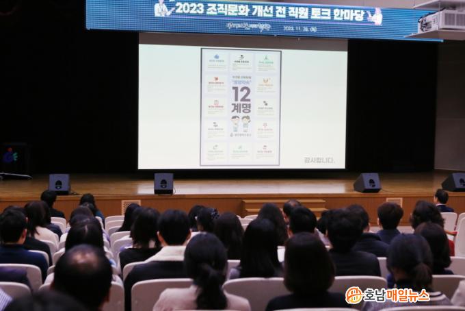 [È£³²¸ÅÀÏ´º½º = ±è±Ý´ö ±âÀÚ] ±¤ÁÖ µ¿±¸(ûÀå ÀÓÅÃ)´Â ¹Î¼± 8±â Ãâ¹ü 1ÁÖ³â°ú ÇÔ²² º»°Ý ÃßÁøÇØ ¿Â Á¶Á÷¹®È °³¼± ¼º°ú¸¦ µÇµ¹¾Æº¸°í, Á÷¿øµéÀÇ Áø¼ÖÇÑ ÀǰßÀ» ¼ö·ÅÇϰíÀÚ ¸¶·ÃÇÑ ¡®Àü Á÷¿ø ÅäÅ© ÇѸ¶´ç¡¯À» ¼ºÈ²¸®¿¡ °³ÃÖÇß´Ù°í ¹àÇû´Ù.