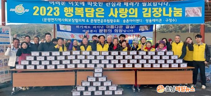 ¹®Æò¸é Áö¿ª»çȸº¸ÀåÇùÀÇü(°øµ¿À§¿øÀå ÀÓÀ±½Ä¡¤±èÀϼø)´Â °ü³» ³ó°¡¿¡¼ ¼öÈ®ÇÑ ¹èÃß µî ³ó»ê¹°·Î ±èÀå±èÄ¡ 300Æ÷±â¸¦ Àå¸¸ÇØ ¼Ò¿Ü°èÃþ 100°¡±¸¿¡ Àü´ÞÇß´Ù°í 5ÀÏ ¹àÇû´Ù.