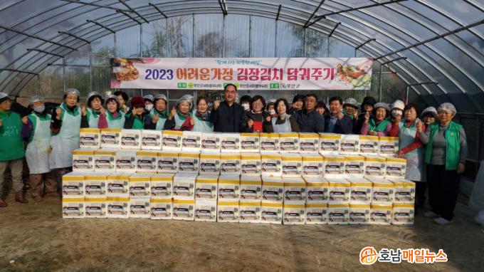 À̳¯ Çà»ç¿¡´Â ¹«¾ÈÀ¾ »õ¸¶À»ºÎ³àȸ 40¿© ¸íÀÌ Âü¿©ÇØ 500Æ÷±â ±èÀå±èÄ¡¸¦ ´ã°¡ °¢ ¸¶À» °æ·Î´ç, »ýȰÀÌ ¾î·Á¿î Ãë¾à°èÃþ¿¡ Á÷Á¢ Àü´ÞÇÏ¸ç ¾ÈºÎ¸¦ »ìÆñ´Ù.