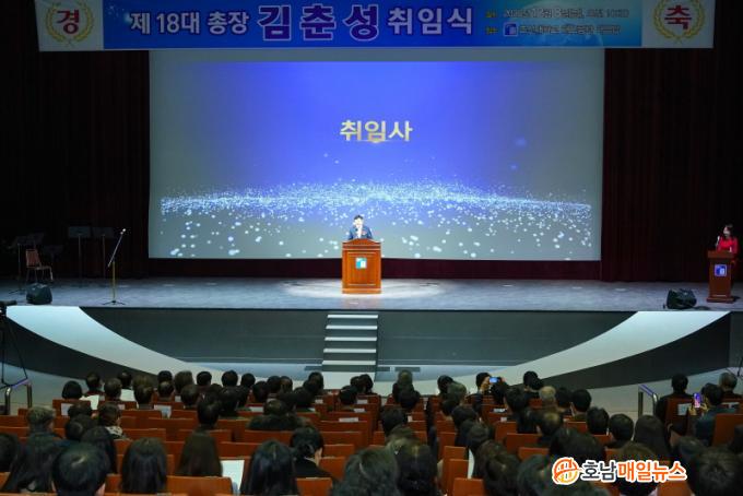 Á¶¼±´ëÇб³(ÃÑÀå ±èÃἺ)´Â 8ÀÏ ¿ÀÀü Á¶¼±´ë ÇØ¿À¸§°ü¿¡¼ ¡®±èÃἺ Á¦18´ë Á¶¼±´ë ÃÑÀå ÃëÀӽġ¯À» °³ÃÖÇß´Ù°í ¹àÇû´Ù. ÃëÀÓ½ÄÀº °³½Ä»ç, ±¹¹ÎÀÇ·Ê, ÃÑÀå ¼Ò°³, ±³±â Àü´Þ, ÃàÇÏ ²É´Ù¹ß ÁõÁ¤, ÃëÀÓ»ç ³¶µ¶, ±³¹«À§¿ø ¼Ò°³, °ø·ÎÆÐ ¼ö¿©, Ãà»ç, ±³°¡ Á¦Ã¢, Æó½Ä»ç ¼øÀ¸·Î ÁøÇàµÆ´Ù.
