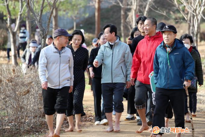 ÀÌ¿¡ ±¤»ê±¸´Â ¸Ç¹ß±æÀ» Áß½ÉÀ¸·Î ½Ã¹Î ÀÏ»ó¿¡ °Ç°°ú Ȱ·ÂÀ» ³ôÀÌ´Â ´Ù¾çÇÑ È°µ¿ÀÌ »ý°Ü³ª°í Áö¿ª¸¸ÀÇ ¹®È·Î ¼ºÀåÇÒ ¼ö ÀÖµµ·Ï Áö¿øÇÒ °èȹÀÌ´Ù. ÀÇ°ß Ã»Ãë ÈÄ ¹Úº´±Ô ûÀå°ú Âü¿© ÁֹεéÀº ÇÔ²² ÷´Ü¾Æ¹ÌµÑ·¹±æ ¸Ç¹ß±æÀ» °É¾îº¸´Â ½Ã°£À» °¡Á³´Ù. ù ¼ÒÅ븶´çÀ» ±â³äÇØ ¹ßÀÚ±¹À» ³²±â´Â ¼³Á¤±Øµµ ÁøÇàÇß´Ù.