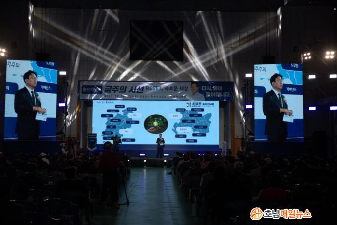 ÃâÆÇ±â³äȸ´Â ¡®³ªÁÖ, ȼøÀÇ »õ·Î¿î º¯È¡¯¿Í ¡®³óÃÌ »ì¸®±â 10³â ÇÁ·ÎÁ§Æ®¡¯¶ó´Â ÁÖÁ¦·Î 1ºÎ ±â³äÇà»ç¿Í 2ºÎ ÀÌöÈñ Àü Á¤¹«¼ö¼®ÀÌ ÁøÇàÇÏ´Â ºÏÄܼƮ·Î ÁøÇàµÆ´Ù. ÇöÀå¿¡´Â ¼Õ ÀüÀÇ¿ø°ú °¢º°ÇÑ Àο¬ÀÌ ÀÖ´Â ±¹È¸ÀÇ¿ø, ±âÃÊ´ÜüÀå, ±¤¿ªÀÇ¿ø, ±âÃÊÀÇ¿ø°ú ±â°ü´Üü, ½Ã¹Î»çȸ´Üü ³ªÁֽùΠȼø±º¹Î µî 10,000¿© ¸íÀÇ »ç¶÷µéÀÌ ¸ô·Áµé¾î ±¸¸§ÀÎÆÄ ¼Ó¿¡ Çà»ç°¡ ÁøÇàµÆ´Ù.