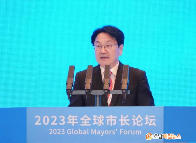 ° ½ÃÀåÀº °³¸·½Ä Ãà»ç¸¦ ÅëÇØ ¡°¼¼°è´Â Áö¼Ó°¡´É¹ßÀüÀ» À§ÇÑ µµ½ÃÀÇ ¿ªÇÒÀ» Ã˱¸Çϰí ÀÖ´Ù. µµ½Ã°¡ Áö¼Ó°¡´ÉÇØÁö¸é ¼¼°èµµ Áö¼Ó °¡´ÉÇØÁø´Ù¡±¸ç ¡°±¤ÁÖ´Â ¼¼°èÀαǵµ½ÃÆ÷·³À» 13ȸ° ¿î¿µÇϰí ÀÖÀ¸¸ç Áö³ÇØ¿¡´Â ¡®±âÈÄÀ§±â·Î ÀÎÇØ À§Çù¹Þ´Â ½Ã¹Î°ú µµ½Ã¡¯¿¡ ´ëÇØ, ¿ÃÇØ´Â ¡®ºó°ï°ú ºÒÆòµî¿¡ ´ëÀÀÇÏ´Â µµ½Ã¡¯¿¡ ´ëÇØ Àü ¼¼°èÀÇ ÇÐÀÚ, Àü¹®°¡, Á¤Ã¥°áÁ¤±ÇÀÚµé°ú ÀǰßÀ» ³ª´³°í Áö¼Ó°¡´É¼ºÀÌ¾ß ¸»·Î ±¤ÁÖ½ÃÀÇ Áß¿äÇÑ ÈµÎ¡±¶ó°í ¹àÇû´Ù.