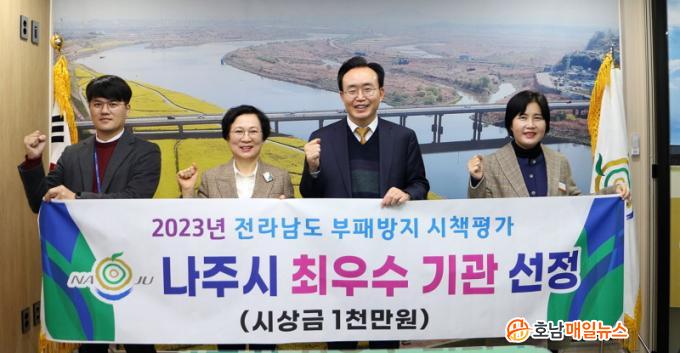 ³ªÁֽô Àü¶ó³²µµ¿¡¼ ÁÖ°üÇÑ 2023³â ½Ã¡¤±º ºÎÆÐ¹æÁö ½ÃÃ¥Æò°¡¿¡¼ 22°³ ½Ã¡¤±º Áß 1À§¿¡ ÇØ´çÇÏ´Â ÃÖ¿ì¼ö±â°üÀ¸·Î ¼±Á¤µÆ´Ù°í 14ÀÏ ¹àÇû´Ù. ÃÖ¿ì¼ö±â°ü ¼±Á¤À» ÅëÇØ ½Ã´Â ½Ã»ó±Ý 1000¸¸¿øÀ» ¹Þ¾Ò´Ù.