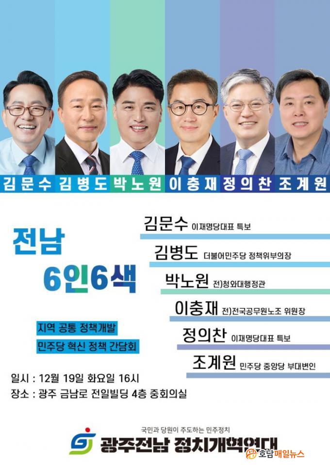 ¶ÇÇÑ ±¤ÁÖÀü³²Á¤Ä¡°³Çõ¿¬´ë´Â Áö³ 11¿ù14ÀÏ ±¤ÁÖ±¤¿ª½ÃÀÇȸ¿¡¼ °³ÃÖµÈ ¡°7ÀÎ7»ö¡±Á¤Ã¥Åä·Ðȸ¿¡ À̾î À̹ø ¡°Àü³² 6ÀÎ6»ö¡±°£´ãȸ¸¦ ÅëÇØ Á¤Ä¡½ÅÀε鿡°Ô´Â ÀڽŵéÀÇ À̾߱⸦ ÀüÇÒ °ø°£À» °è¼Ó ¸¶·ÃÇÒ °ÍÀ̸ç, Á¤Ä¡½ÅÀεé°ú ÇÔ²² ¹ÎÁÖ´ç Çõ½Å¿¡ ´ëÇÑ ³»¿ë°ú ±¤ÁÖÀü³²Áö¿ª ¹ßÀüÀ» À§ÇÑ °øÅë °ø¾à°³¹ßÁغñ¸¦ ÇØ ³ª°¥ °ÍÀ̶ó°í ¹àÇû´Ù.