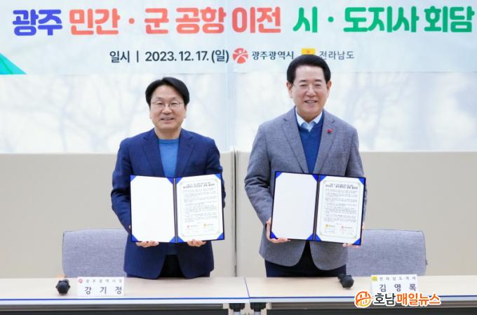 [È£³²¸ÅÀÏ´º½º] °±âÁ¤ ±¤ÁÖ±¤¿ª½ÃÀå°ú ±è¿µ·Ï Àü³²µµÁö»ç°¡ 17ÀÏ ¿ÀÈÄ Àü³² ³ªÁÖÇõ½Åµµ½Ã Çѱ¹³ó¼ö»ê½ÄǰÀ¯Åë°ø»ç(AT)¿¡¼ ¸¸³ª ±¤ÁÖ ±º¡¤¹Î°£ °øÇ× ÀÌÀü ÃßÁø°ú °ü·ÃÇÑ ³íÀǸ¦ ¸¶Ä£ µÚ °øµ¿¹ßÇ¥¹®À» ¹ßÇ¥Çß´Ù.
