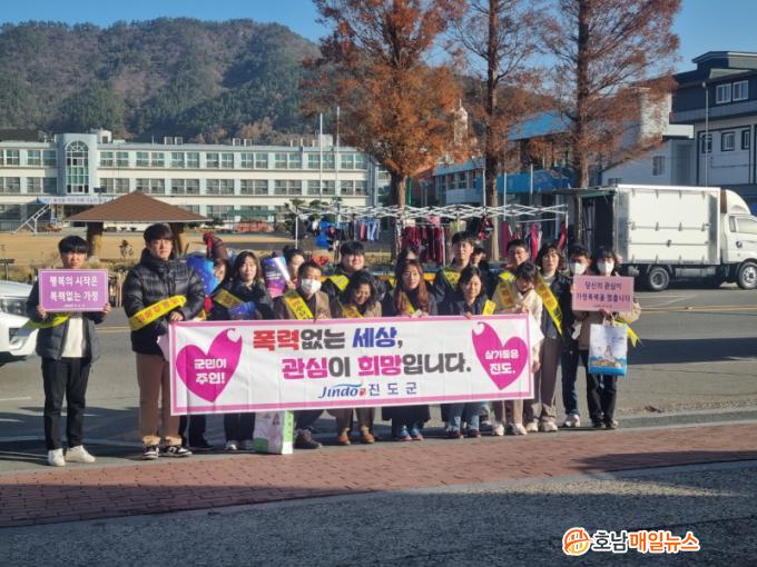 Áøµµ±º¿©¼º´ÜüÇùÀÇȸ ȸ¿øµé°ú Áøµµ±º °¡Á·¼¾ÅÍ Á÷¿ø µî ±â°ü´Üü 40¿©¸íÀÌ Âü¿©ÇØ ±º¹ÎµéÀÇ ÀÎ½Ä °³¼±À» À§ÇØ È«º¸¹°°ú ¾È³»ÆÇÀ» µé¸ç ±æ°Å¸® ÇàÁøÀ» ÁøÇàÇß´Ù.