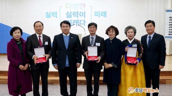ÀÌÁ¤¼± ±³À°°¨Àº Àλ縻À» ÅëÇØ ¡°¼ö»óÇϽŠºÐµéÀÇ °øÀûÀº ¿ì¸® ±¤ÁÖ±³À°ÀÇ Å« ¹ßÀÚÃë·Î ³²¾Æ ¿À·¡µµ·Ï ±â¾ïµÉ °ÍÀÌ´Ù. ¿À´Ã Çà»ç°¡ ¸ðµç ±³Á÷¿øµéÀÌ ¼ö»óÇϽŠºÐµéÀÇ °øÀûÀ» º»¹Þ¾Æ ¹Ì·¡¸¦ ¿¾î°¡´Â Çõ½ÅÀû Æ÷¿ë±³À° ½ÇÇöÀ» À§ÇØ °¢ÀÚ°¡ ÃÖ¼±À» ´ÙÇÏ´Â °è±â°¡ µÇ±â¸¦ ¹Ù¶õ´Ù¡±°í ¹àÇû´Ù.