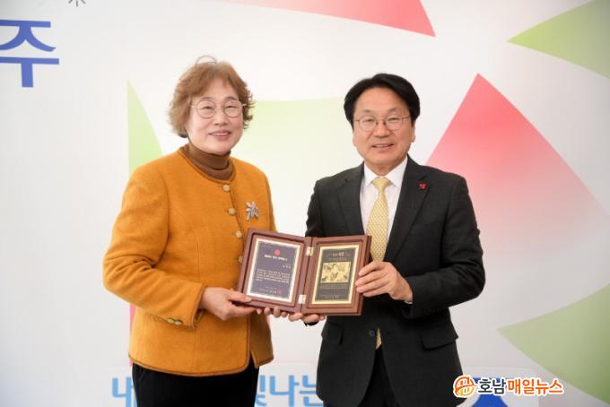 °±âÁ¤ ±¤ÁÖ½ÃÀåÀº ¡°³ª´®°ú µ¹º½¿¡ ºÀ»çÇÏ´Â ½Ã¹ÎµéÀÌ ±¤ÁÖ°øµ¿Ã¼ÀÇ ºÒÀ» ȯÈ÷ ¹àÇôÁÖ°í °è½Å´Ù¡±¸ç ¡°¼¼°èÀûÀ¸·Î Çõ½Å¼ºÀ» ÀÎÁ¤¹Þ¾Æ ±¹Á¦µµ½ÃÇõ½Å»óÀ» ¼ö»óÇÑ ±¤ÁÖ´Ù¿òÅëÇÕµ¹º½ ¶ÇÇÑ ¿À·£½Ã°£ ºÀ»ç¿Í µ¹º½À» ÇØÁֽŠºÐµé ´öºÐÀÌ´Ù. ³ª´®°ú ¿¬´ëÀÇ ±¤ÁÖ°øµ¿Ã¼ °¡Ä¡¸¦ ¸ö¼Ò ½ÇõÇϰí ÀÖ´Â ºÐµéÀ» Áö¼ÓÀûÀ¸·Î ¹ß±¼ÇØ ±× ¾÷ÀûÀ» ±â¸®°Ú´Ù¡±°í ¸»Çß´Ù.