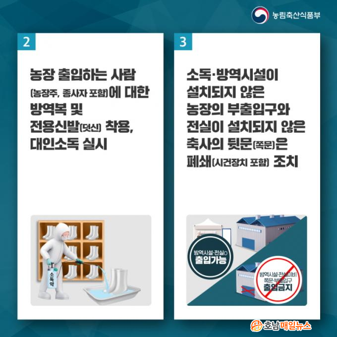 °È¿¼® Àü³²µµ ³óÃà»ê½Äǰ±¹ÀåÀº ¡°¹ÙÀÌ·¯½º Á¢ÃË °¡´É¼ºÀÌ Àִ ö»õ µµ·¡Áö µî ÃâÀÔÀ» »ï°¡°í, ³óÀå ÃâÀÔ Â÷·® 2´Ü°è ¼Òµ¶(°íÁ¤½Ä¼Òµ¶±â ¹× °í¾ÐºÐ¹«±â ¼Òµ¶), °è¶õ ¿î¹ÝÂ÷·® ³óÀå ³» ÁøÀÔ ±ÝÁö, Ãà»ç ÃâÀÔ Àü Àü¿ë ÀåÈ °¥¾Æ½Å±â, ¿ÜºÎÀÎ ³óÀå ÃâÀÔ ÅëÁ¦ µî ±âº»ÀûÀÎ ¹æ¿ª¼öÄ¢À» öÀúÈ÷ ÁؼöÇØ ÁÙ °Í¡±À» °Á¶Çß´Ù. ÀÌ¾î ¡°»çÀ° ÁßÀÎ °¡±Ý¿¡¼ Æó»ç Áõ°¡, »ê¶õÀ² ÀúÇÏ µî °íº´¿ø¼º Á¶·ùÀÎÇ÷翣ÀÚ ÀÇ½É ÁÖ¿äÁõ»ó»Ó¸¸ ¾Æ´Ï¶ó »ç·á¼·Ãë ÀúÇÏ, Á¹À½, È£Èí±â Áõ»ó, ³ìº¯ µî °æ¹ÌÇÑ Áõ»óÀÌ È®Àεŵµ Áï½Ã ¹æ¿ª ´ç±¹À¸·Î ½Å°íÇØ ´Þ¶ó¡±°í ´çºÎÇß´Ù