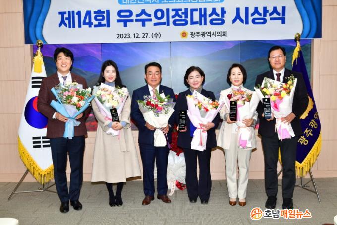 ¿ì¼öÀÇÁ¤´ë»óÀ» ¼ö»óÇÑ ÀÇ¿øµéÀº ¡°±¤ÁÖ ¹ßÀü°ú 145¸¸ ½Ã¹ÎÀÇ º¹¸®ÁõÁø Çâ»óÀ» À§ÇØ ´õ¿í ³ë·ÂÇϰڴÙ.¡±¸é¼, ¡°Ç×»ó ½Ã¹ÎÀ» À§ÇÑ ÀÇÁ¤È°µ¿¿¡ ¼ÒȦÇÔÀÌ ¾øµµ·Ï ÃÖ¼±À» ´ÙÇϰڴÙ.¡±°í ¼Ò°¨À» ¹àÇû´Ù.