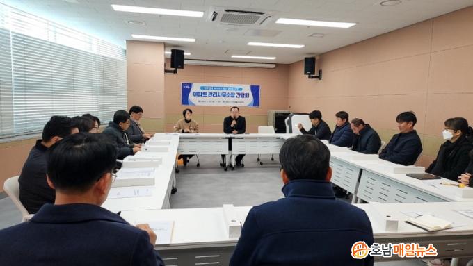 À̹ø °£´ãȸ´Â ¼øÃµ½Ã ÀÓ´ë¾ÆÆÄÆ® °ü¸®»ç¹«¼ÒÀå 12¸íÀÌ Âü¼®ÇÑ °¡¿îµ¥, ¾ÆÆÄÆ® ³» µ¹º½ »ç°¢Áö´ë¿Í ÀÌ¿ôµ½±â ¿ì¼ö»ç·Ê¿¡ ´ëÇØ °øÀ¯ÇÏ´Â ½Ã°£À» °¡Á³´Ù.