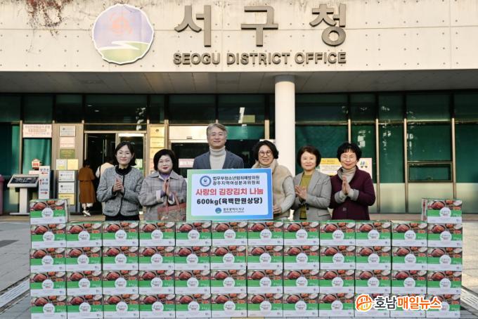 [È£³²¸ÅÀÏ´º½º = ±è±Ý´ö ±âÀÚ] ±¤Áֽà ¼±¸´Â 27ÀÏ ¿ÀÈÄ ±¸Ã»¾Õ ±¤Àå¿¡¼ ¹ý¹«ºÎû¼Ò³â¹üÁË¿¹¹æÀ§¿øÈ¸ ±¤ÁÖÁö¿ª¿©¼ººÐ°úÀ§¿øÈ¸(À§¿øÀå ÀÓ¹ÎÀÚ)·ÎºÎÅÍ Áö¿ª ³» µ¹º½ÀÌ¿ôµéÀÌ µû¶æÇÑ °Ü¿ï³ª±â¸¦ À§ÇÑ ±èÀå±èÄ¡ 10kg 60¹Ú½º(600¸¸¿ø »ó´ç)¸¦ Àü´Þ¹Þ°í °¨»çÀÇ ¸¶À½À» ÀüÇß´Ù.