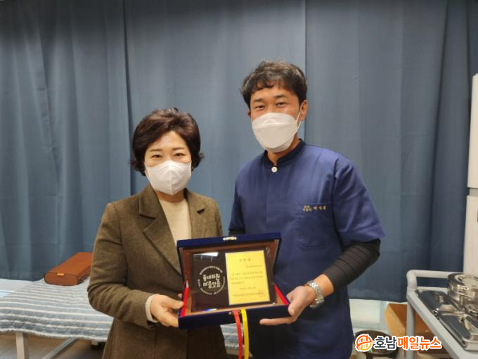 µ¿³×ÀÇ¿ø ¸¶À½ÀÌÀ½»ç¾÷ Çù¾à±â°üÀÎ ¹ÚÀÏÁ¾ ³»°ú¿Í ¹Ú¼®È« °¡Á¤ÀÇÇаú´Â Áö³´Þ 28ÀÏ Àü³²µµ ¹× Àü³²±¤¿ªÁ¤½Å°Ç°º¹Áö¼¾ÅÍ ÁÖ°üÀÇ ¡®2023³â ÅëÇÕÁ¤½Å°Ç°ÁõÁø µ¿³×ÀÇ¿ø ¸¶À½ÀÌÀ½»ç¾÷¡¯ ºÎ¹® ¿ì¼ö±â°ü ¼±Á¤À¸·Î °ø·Î¸¦ ÀÎÁ¤¹Þ¾Ò´Ù.