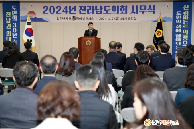 À̳¯ ½Ã¹«½ÄÀº °©Áø³â »õÇØ ÀÇÁ¤ ¸ñÇ¥¸¦ °øÀ¯ÇÏ°í ´Þ¼º ÀÇÁö¸¦ ´ÙÁö±â À§ÇØ ¸¶·ÃµÆÀ¸¸ç Âü¼®ÇÑ ÀÇ¿øµé°ú Á÷¿øµéÀº ¹Î»ý°æÁ¦ ȸº¹°ú Àü³²±Ç ÀÇ´ë ¼³¸³, Áö¹æ¼Ò¸ê À§±â ´ëÀÀ¿¡ ÃÑ·ÂÀ» ´ÙÇϱâ·Î ¶æÀ» ¸ð¾Ò´Ù.
