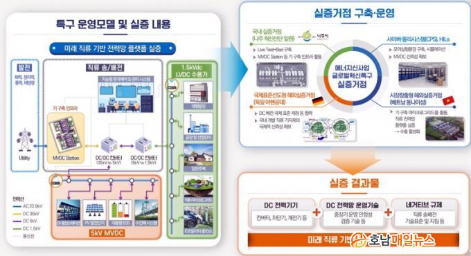 Àü³² ¿¡³ÊÁö½Å»ê¾÷ ±Û·Î¹ú Çõ½ÅƯ±¸´Â ¡®¹Ì·¡ Á÷·ù±â¹Ý Àü·Â¸Á Ç÷§Æû »ó¿ëÈ¡¯ »ç¾÷¿¡ ÁßÁ¡À» µÎ°í ÃßÁøµÈ´Ù. Á÷·ù±â¹Ý Àü·Â¸ÁÀº ½ÅÀç»ý¿¡³ÊÁö ¼³ºñ ±ÞÁõÀ¸·Î ±âÁ¸ ±³·ù(AC) Àü·Â °èÅë¸Á Æ÷È, °èÅëÁ¢¼Ó Áö¿¬, Ãâ·ÂÁ¦ÇÑ µîÀÇ ¹®Á¦Á¡°ú Àü±âÀÚµ¿Â÷ º¸±Þ È®»ê, µµ½ÉÀü·Â¼ö¿ä Áõ°¡¿¡ µû¸¥ Àü·Â ¼Òºñ·® ±ÞÁõ Ãß¼¼¸¦ ÇØ¼ÒÇØÁÙ ÇÙ½É »ê¾÷À¸·Î ²ÅÈù´Ù.