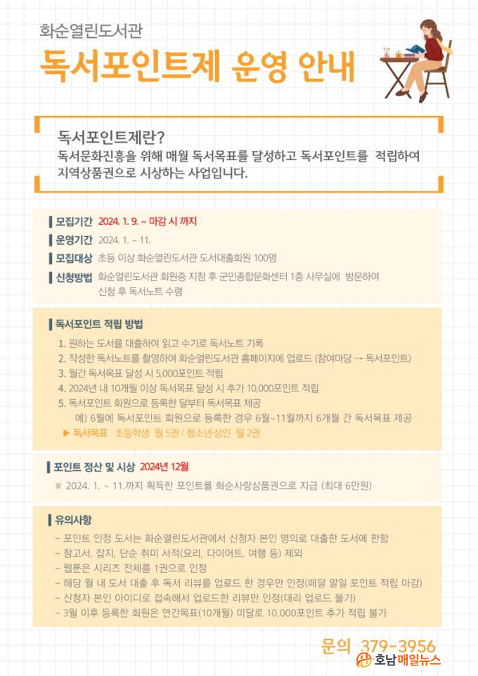 ÀÛ³â 6¿ù °ü·Ã Á¶·Ê¸¦ Á¦Á¤ÇÏ°í ½Ã¹ü ¿î¿µÀ» °ÅÃÄ ¿ÃÇØ Á¤½Ä ¿î¿µµÇ´Â µ¶¼Á¡¼öÁ¦´Â Áö¿ªÁֹε鿡°Ô µ¶¼¿¡ ´ëÇÑ µ¿±â¸¦ ºÎ¿©Çϰí, µ¶¼¹®È¸¦ È®»ê½Ã۱â À§ÇÑ »ç¾÷À¸·Î ¸Å¿ù µ¶¼ ¸ñÇ¥(ÃʵîÇлý 5±Ç, ÁßÇлý ÀÌ»ó 2±Ç) ´Þ¼º°ú ÇÔ²² ȼø¿¸°µµ¼°ü ´©¸®Áý¿¡ µ¶ÈݨÀ» µî·ÏÇϸé, ¸Å¿ù 5,000Á¡À» Àû¸³Çϰí Á¡¼ö¸¦ Á¤»êÇÏ¿© ȼø»ç¶û»óǰ±ÇÀ» Áö±ÞÇÑ´Ù.