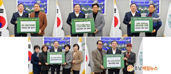 ´ã¾ç±ºÀº °¨·Î³óÀå(´ëÇ¥ ¼ÛÀÎÁÖ), ´ã¾ç±º¿©¼ºÃà»êȸ(ȸÀå ½Å³²¼ø), Èæ¿°¼ÒÇùȸ ´ã¾çÁöºÎ(ȸÀå Á¤¿ëȯ)¿¡¼ Çö±Ý °¢ 100¸¸ ¿ø, ÇÑ¿ì³ó°¡(´ëÇ¥ ±èÀϰï)¿¡¼ ¼Ò»À 400»óÀÚ(800¸¸ ¿ø »ó´ç), ÇÁ·ÎƾÆÑÅ丮(´ëÇ¥ ÃÖ¿õö)¿¡¼ ¶óÀ̽º ½Ã¸®¾ó 80»óÀÚ(152¸¸ ¿ø »ó´ç)À» ±âŹÇß´Ù°í ÀüÇß´Ù.