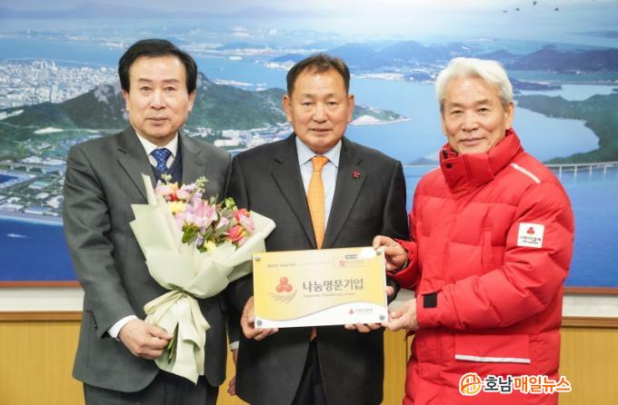À̳¯ °¡ÀԽĿ¡¼´Â Àü³²»çȸº¹Áö°øµ¿¸ð±Ýȸ¿¡¼ ¢ß´ëâ½Äǰ¿¡ ³ª´®¸í¹®±â¾÷ ÇöÆÇÀ» Àü´ÞÇßÀ¸¸ç, ¹ÚÈ«·ü ¸ñÆ÷½ÃÀåÀÌ ÇÔ²² Âü¼®ÇØ ±â¾÷ÀÇ »çȸ°øÇåȰµ¿À» °Ý·ÁÇß´Ù.