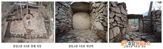 °íÈï ºÀ¸²¸® ºÀ¸²°íºÐ±º Áß 1¡¤4È£ºÐÀ» ´ë»óÀ¸·Î ÁøÇàµÈ ¹ß±¼Á¶»ç´Â ºñ·Ï µµ±¼µÅ ÈѼÕÀº µÇ¾úÁö¸¸ ºñ±³Àû ¿ÂÀüÇÑ ÇüÅÂÀÇ È¾Ç÷½Ä¼®½ÇÀÌ È®ÀεƴÙ. 1È£ºÐÀº ¿øÇüºÐ(1,080cm)À¸·Î ¼®½Ç(300¡¿160cm), ø¢ÀÚÇü ¿¬µµ, ¹®Æ²½Ã¼³ µîÀÌ ³²¾Æ ÀÖÀ¸¸ç, ÃâÅäÀ¯¹°Àº ±ÁÀÌ ³ôÀº ÀÜÀÎ °í¹è 2Á¡°ú °ü°í¸® 3Á¡ µîÀÌ´Ù. 4È£ºÐÀº ¹æÆÐÇü(1,400cm)À¸·Î ¼®½Ç(300¡¿156¡¿161cm), 11ÀÚÇü ¿¬µµ, ¹®Æ²½Ã¼³ µîÀÌ È®ÀεǸç, ÃâÅäÀ¯¹°Àº °ü¸ø µîÀÌ´Ù.
