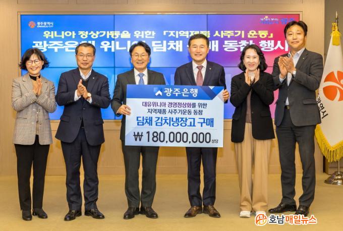 ±Ý¹ø ±¸¸Å ¿îµ¿Àº ±¤ÁÖÀºÇà ÀÓÁ÷¿øµéÀÌ Áö¿ª±â¾÷ »ý»êǰ ±¸¸Å¿¡ ÀÚ¹ßÀûÀ¸·Î Âü¿©ÇßÀ¸¸ç, ¾à 1¾ï8õ¸¸¿ø »ó´çÀÇ µõä ±èÄ¡³ÃÀå°í¸¦ ±¸¸ÅÇÏ¿© Áö¿ª±â¾÷ÀÇ ¾î·Á¿òÀ» ÇÔ²² ³ª´©¸ç Çù·Â°ü°è¸¦ ´õ¿í ±»°ÇÈ÷ ´ÙÁ³´Ù.