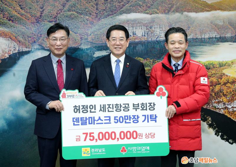 Àü³²µµ´Â 5ÀÏ ÇãÁ¤ÀÎ ¼¼ÁøÇ×°ø ºÎȸÀåÀ¸·ÎºÎÅÍ Ãë¾à°èÃþ Áö¿øÀ» À§ÇØ ¸¶½ºÅ© 50¸¸ Àå(7õ500¸¸ ¿ø »ó´ç)À» ±âºÎ¹Þ°í, Àü³²µµÃ» Á÷¿øµéÀÌ ¸ðÀº ¼º±Ý 5õ240¸¸ ¿øÀ» Àü³²»çȸº¹Áö°øµ¿¸ð±Ýȸ¿¡ Àü´ÞÇß´Ù°í ¹àÇû´Ù.
