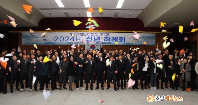 º» Çà»ç¿¡¼´Â ¿ì½ÂÈñ ¿µ¾Ï±º¼ö¸¦ Æ÷ÇÔÇØ ¿µ¾Ï±ºÀÇȸÀÇ¿ø, ±â°üÀå, ±â¾÷ÀÎ, »çȸ´ÜüÀå µî ³»ºó ¼Ò°³°¡ À̾îÁ³´Ù. ¼Ò°³¸¦ ¹ÞÀº Âü¼®ÀÚµéÀº ¼·Î ¿¹ÀǸ¦ °®Ãç Àλ縦 °Ç³×¸ç »õÇØ¸¦ ÃàÇÏÇÏ´Â ÇϷʸ¦ ³ª´³´Ù.