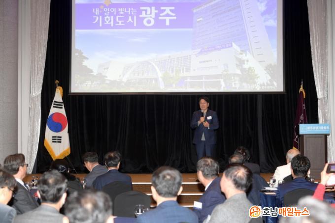 ° ½ÃÀåÀº ƯÈ÷ ¡°À§±â¸¦ ±âȸ·Î ¸¸µé±â À§ÇØ Áö¿ª °æÁ¦Àεé°ú ¿øÆÀÀ¸·Î ÇÔ²² ´Þ¸®°Ú´Ù¡±¸é¼ ¡°±¤ÁÖ¸¦ ´õ »ì±â ÁÁÀº, ´õ Áñ±â±â ÁÁÀº, ´õ ±â¾÷Çϱâ ÁÁÀº µµ½Ã·Î ÇÔ²² ¸¸µé¾î°¡ÀÚ¡±°í °Á¶Çß´Ù.