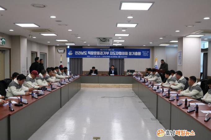 Àü¶ó³²µµÃ¼À°È¸(ȸÀå ¼ÛÁøÈ£)´Â 11ÀÏ Àü¶ó³²µµÃ¼À°È¸°ü 3Ãþ ´ëȸÀǽǿ¡¼ Àü¶ó³²µµ Á÷Àå¿îµ¿°æ±âºÎ ÁöµµÀÚµéÀÌ 2024³â ½ÃÁðÀ» ¾ÕµÎ°í Àü³²Ã¼À° °æ±â·Â Çâ»ó, Á÷Àå¿îµ¿°æ±âºÎ ÁöµµÀÚÇùÀÇȸ Á¤±âÃÑȸ¸¦ °³ÃÖÇß´Ù°í ¹àÇû´Ù.