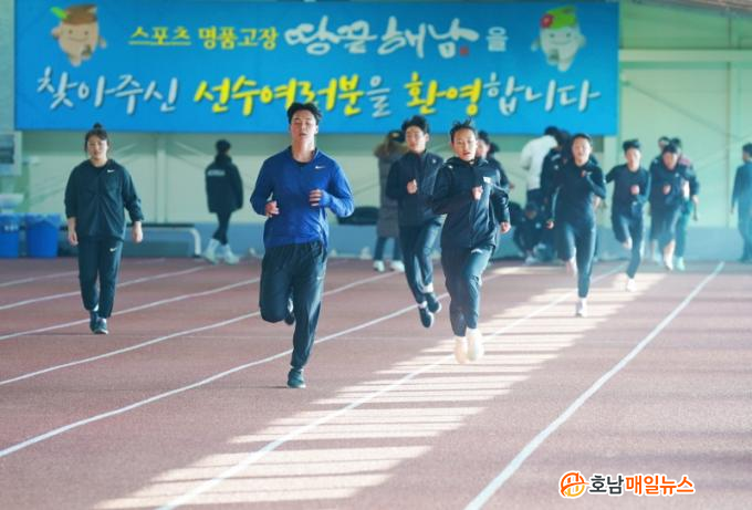 Áö³ 4ÀϺÎÅÍ ÈÆ·Ã¿¡ µ¹ÀÔÇÑ ¼±¼ö´ÜÀº À°»ó µµ¾à°ú ÁßÀå°Å¸® Á¾¸ñÀ¸·Î, Áö³ÇØ¿¡ ÀÌ¾î ´Ù½ÃÇѹø µ¿°èÀüÁöÈÆ·ÃÁö·Î ÇØ³²À» ¼±ÅÃÇß´Ù. ¼±¼ö´ÜÀÇ Ã¼À° ÁöµµÀڴ¡°Çس²Àº Àß °®ÃçÁø ½ºÆ÷Ã÷ ±â¹Ý ½Ã¼³°ú µû¶æÇÑ ³¯¾¾, dz¼ºÇÑ ÀνɱîÁö ´õÇØÁ® ±â´ë ÀÌ»óÀÇ ÈÆ·Ã È¿°ú¸¦ °ÅµÑ ¼ö ÀÖ´Â °÷ÀÌ´Ù¸ç, Áö³ÇØ ÇØ³²¿¡¼ µ¿°è½ÃÁ𠵿¾È ±â·®À» Ű¿î ¼±¼öµéÀÌ ¼¼°è¹«´ë·Î ÁøÃâÇÏ´Â µî ÁÁÀº ¼º°ú¸¦ °ÅµÎ°í ÀÖ¾î À̹ø ÈÆ·Ã¿¡µµ Å« ±â´ë¸¦ Çϰí ÀÖ´Ù¡±°í ÀüÇß´Ù.