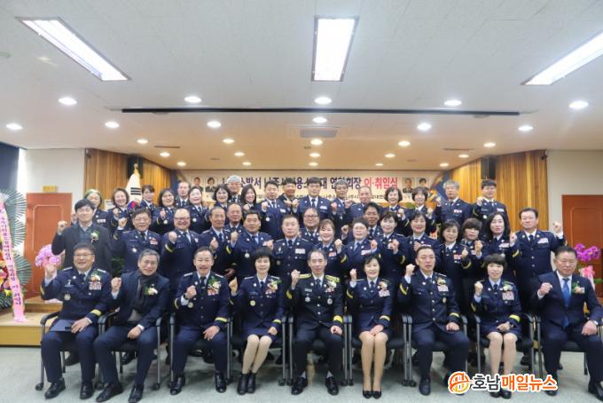 ³ªÁÖ¼Ò¹æ¼(¼Àå ¹Ú¿¬È£)´Â Á¶½Â¸¸, ·ùÁ¤ÀÚ Àü ¿¬ÇÕȸÀå¿¡°Ô Áö¿ªÀÇ ¾ÈÀü°ú ÀÇ¿ë¼Ò¹æ´ë ¹ßÀü¿¡ ±â¿©ÇÑ °ø·ÎÆÐ¸¦ ¼ö¿©Çϰí, ¾ÈÀü¹®È Á¤ÂøÀ» À§ÇÑ Çå½Å°ú ³ë°í¿¡ °¨»ç¿Í °Ý·Á¸¦ Ç¥Çß´Ù. »õ·Î ÃëÀÓÇÑ ³ªº´°ï, ¼±±Ý¼÷ ¿¬ÇÕȸÀåÀº °¢Á¾ ÈÀ翹¹æ ¹× º¹±¸È°µ¿ µîÀ» ÅëÇØ Áö¿ª»çȸ ¹ßÀüÀ» À§ÇØ ³ë·ÂÇØ ¿ÔÀ¸¸ç Àç³ÇöÀå¿¡¼ ½Ã¹Î ¾ÈÀüÀ» À§ÇØ ¼Ö¼±¼ö¹üÇϰڴٴ Æ÷ºÎ¸¦ ¹àÇû´Ù.