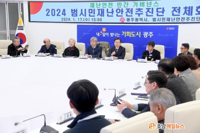 Áö¿ª 40°³ Àç³¾ÈÀü ¹Î°£ ¹× °ø°ø´Üü·Î ±¸¼ºµÈ ¹ü½Ã¹ÎÀç³¾ÈÀüÃßÁø´ÜÀº 2018³â °ü ÁÖµµÀÇ ½Ã¹Î ¾ÈÀü¹®È È®»êÀÇ ÇѰ踦 ÀνÄÇÏ°í ¹Î°£´Üü ÁÖµµÀÇ Àû±ØÀûÀΠȰµ¿À» ÅëÇÑ ¡®¾ÈÀüµµ½Ã ±¤ÁÖ!¡¯¸¦ ¸¸µé±â À§ÇØ Ãâ¹üÇÑ Àç³¾ÈÀü ¹Î°£ÇùÄ¡ ´ÜüÀÌ´Ù. ´ÜüµéÀº »óÈ£ Çù·ÂÇϸç Áö¿ª ¾ÈÀü¹®È È®»ê¿¡ °ßÀÎÂ÷ ¿ªÇÒÀ» Çϰí ÀÖ´Ù.