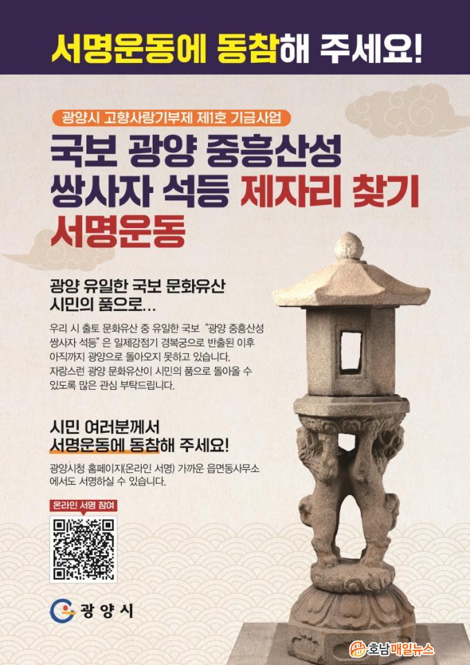 Á¤ÀÎÈ ±¤¾ç½ÃÀåÀº ¡°¿ì¸® ½Ã ÀÚ¶û½º·¯¿î ¹®ÈÀ¯»êÀÌ ½Ã¹ÎÀÇ Ç°À¸·Î µ¹¾Æ¿Ã ¼ö ÀÖµµ·Ï ½Ã¹ÎµéÀÇ ¸¹Àº °ü½É°ú ÇÔ²² ¼¸í¿îµ¿¿¡ µ¿ÂüÇØ ÁÖ½Ã±æ ¹Ù¶õ´Ù¡±¸ç ¡°±¤¾çÀ» ¶°³ ½Ö»çÀÚ ¼®µîÀÌ ÇϷ绡¸® Á¦ÀÚ¸®¸¦ ãÀ» ¼ö ÀÖµµ·Ï ¹ü½Ã¹Î ¿îµ¿À¸·Î È®»êµÇ±æ ±â´ëÇÑ´Ù¡±°í ¸»Çß´Ù.