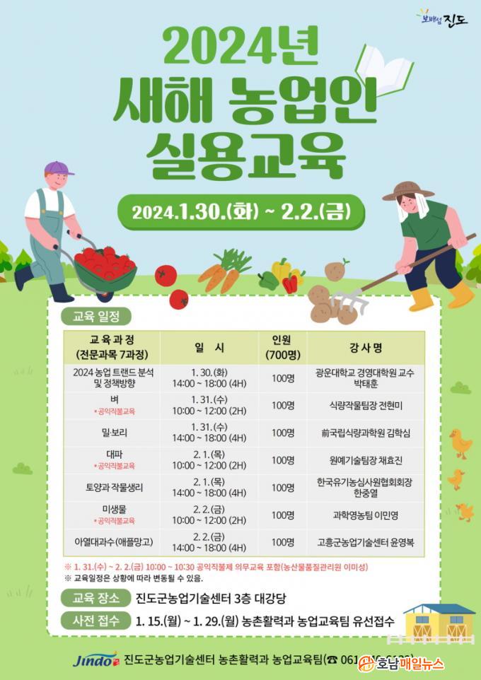 »õÇØ ³ó¾÷ÀÎ ½Ç¿ë±³À°Àº ³ó¾÷Àε鿡°Ô ÇÊ¿äÇÑ ±³À°°úÁ¤À» °³¼³Çϰí ÇÑÇØ ¿µ³ó°èȹ ¼ö¸³°ú ³ó°¡ ¼ÒµæÁõ´ë¸¦ À§ÇØ ÃßÁøµÈ´Ù. ±³À°Àº ¡ã2024 ³ó¾÷°æÇ⠺м®°ú Á¤Ã¥¹æÇ⠡㺠¡ã¹Ð‧º¸¸® ¡ã´ëÆÄ ¡ãÅä¾ç°ú ÀÛ¹°»ý¸® ¡ã¹Ì»ý¹° ¡ã¾Æ¿´ë°ú¼ö(¾ÖÇøÁ°í) µî 7°³ °úÁ¤À¸·Î ¿î¿µµÈ´Ù. ¶ÇÇÑ ³ó¾÷¼Òµæ º¸ÀüÀ» À§ÇÑ °øÀÍÁ÷ºÒ Àǹ«±³À°(³ó»ê¹°Ç°Áú°ü¸®¿ø)°ú ³ó±â°è ¾ÈÀü°ü¸® ±³À°µµ ÇÔ²² ½Ç½ÃµÈ´Ù.